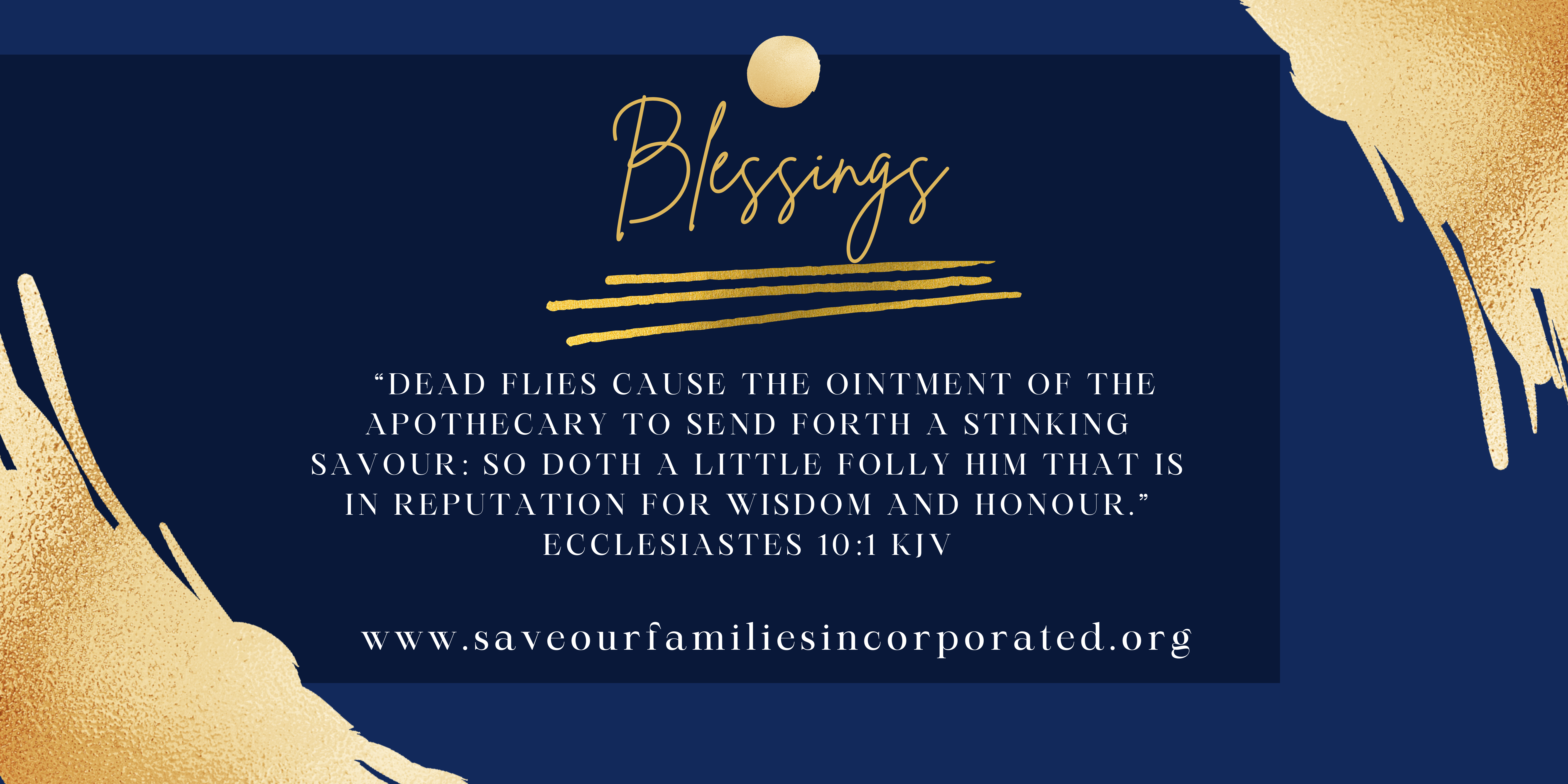 โDead flies cause the ointment of the apothecary to send forth a stinking savour: so doth a little folly him that is in reputation for wisdom and honour.