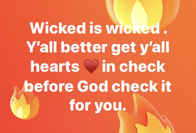 Wicked is wicked . Yโall better get yโall hearts โฅ๏ธ in check before God check it for you.